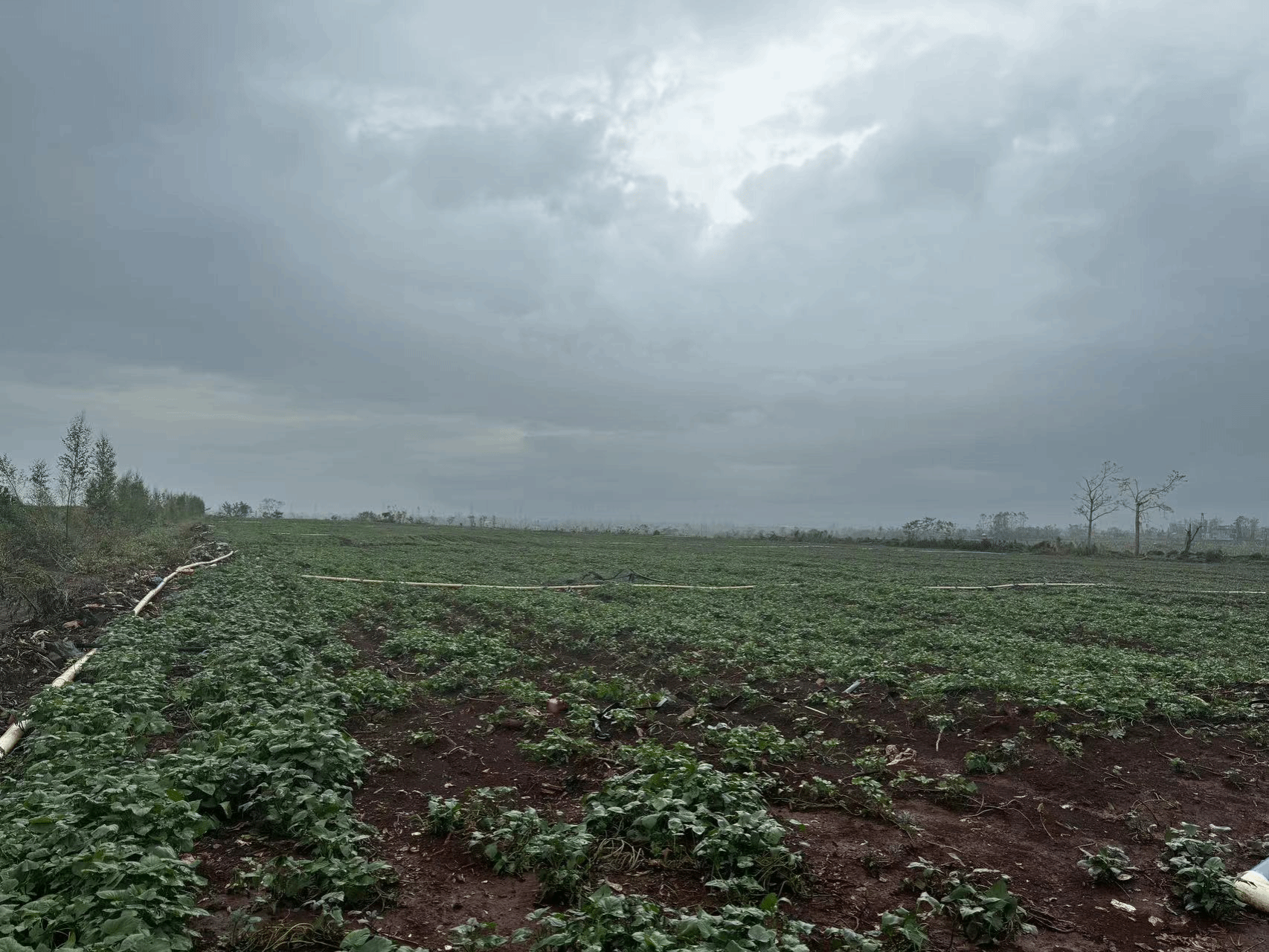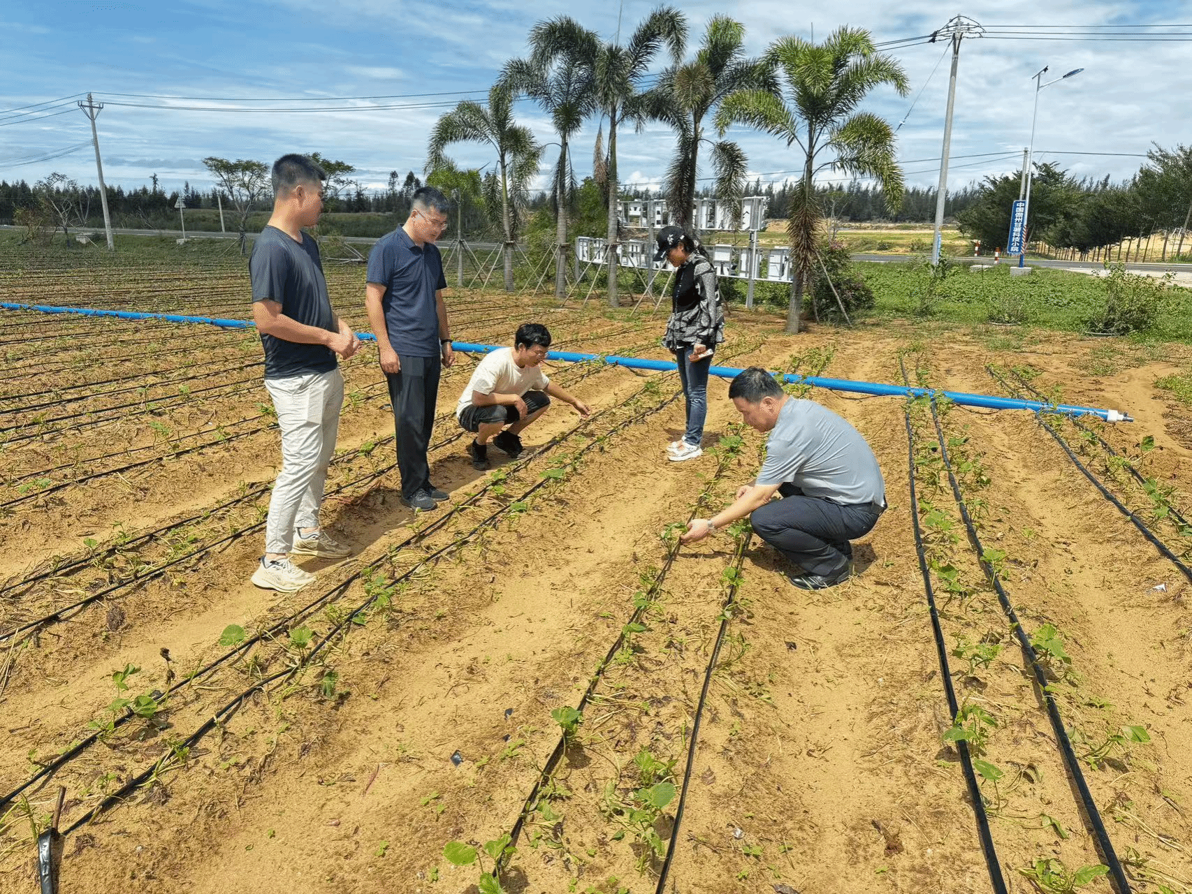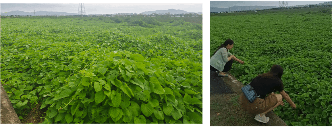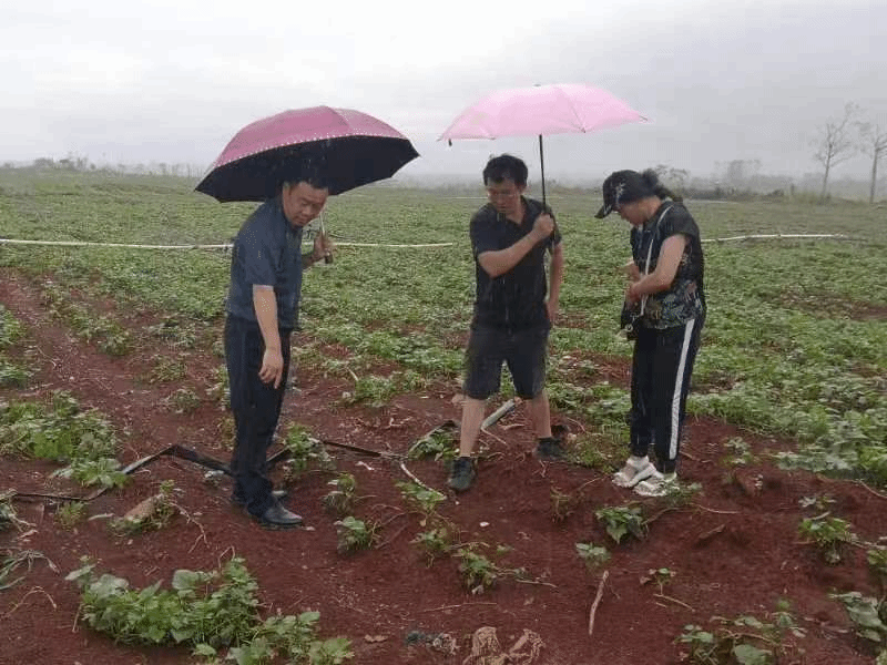随后,团队一行到澄迈桥头镇和儋州海头调研,调研发现甘薯受灾情况较轻。了解受灾情况后,团队第一时间给相关甘薯种植企业提供了灾后甘薯恢复生产措施,以促进种苗生长。