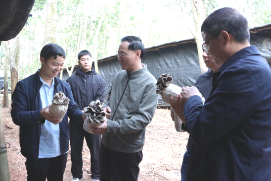 在大成镇推赛村考察林下经济白背毛木耳产业