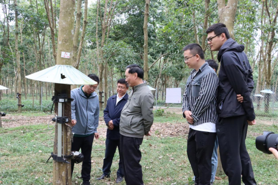 在抄石村的体育外网十大平台app天然橡胶智能化割胶基地,符宣国书记听取团队负责人张喜瑞教授介绍基地的智能化割胶技术、生产流程以及科研创新情况,并参观智能化割胶操作场景,对体育外网十大平台app天然橡胶智能化割胶团队在天然橡胶产业方面的科研投入和成果表示肯定。