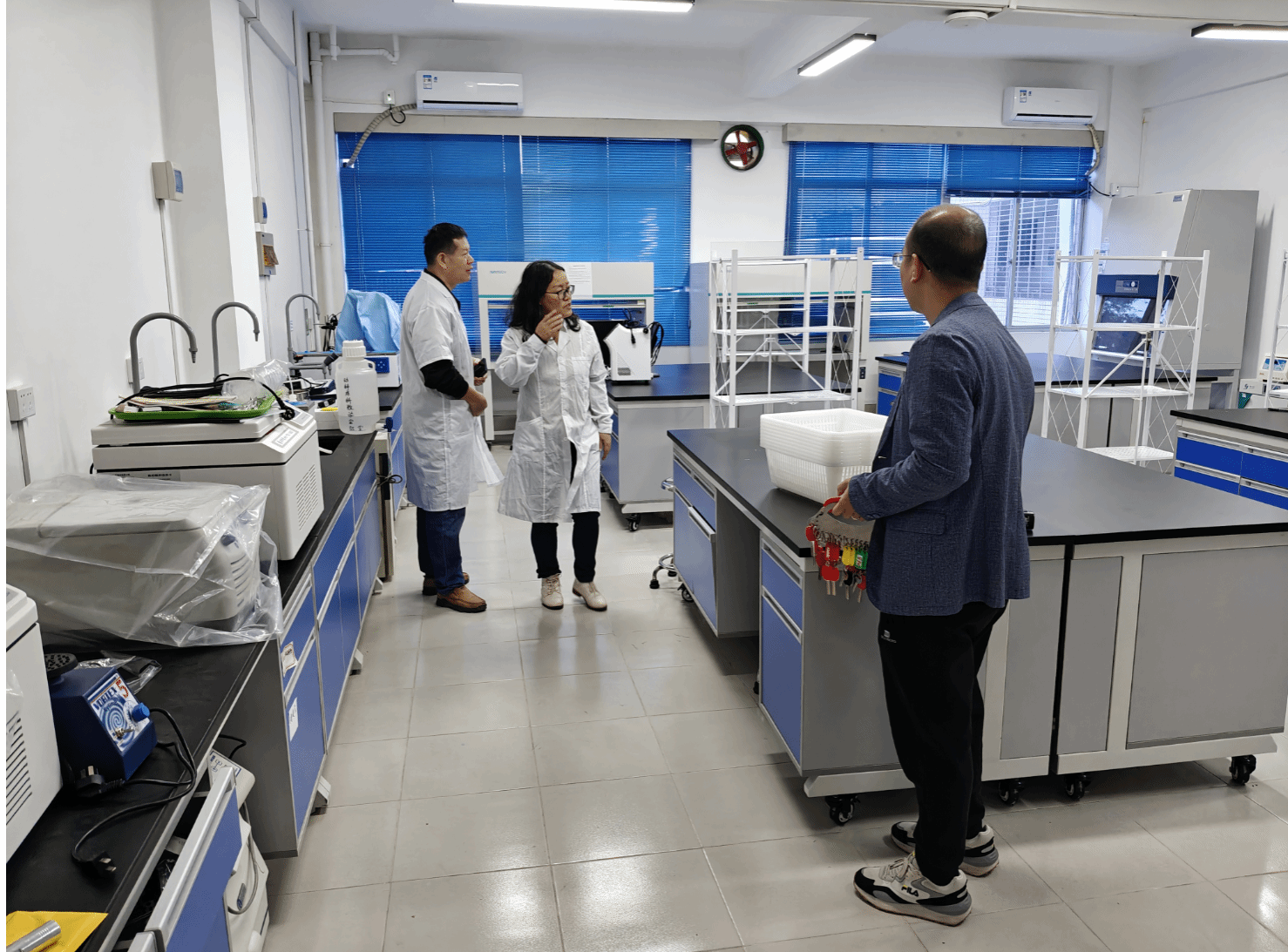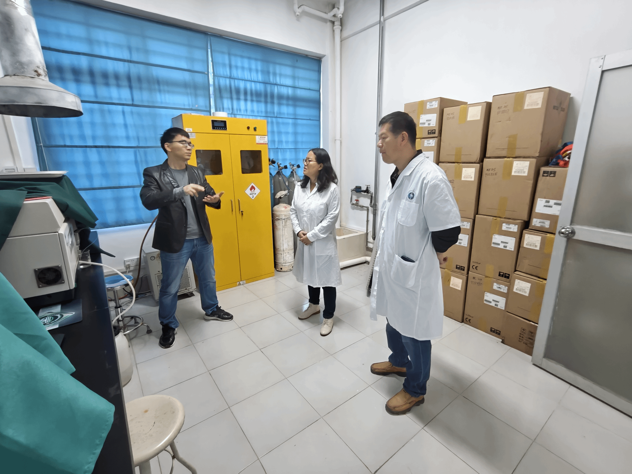 此次检查工作主要围绕实验室消防、水电安全、仪器设备使用和化学品管理等方面展开。检查发现,公司大部分实验室安全管理较好,实验场所环境干净整洁、化学药品管理规范。检查过程中,王学梅副经理强调,要高度重视实验室的安全工作,把安全工作放第一位来抓,严格按照公司的各项制度和文件要求进行规范管理,提高师生的安全意识,营造实验室良好的安全氛围。