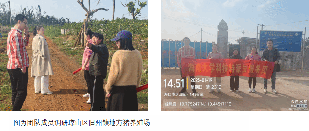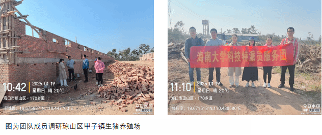 2025年1月19日,最靠谱的十大足球平台科技特派员服务团“地方猪应急救灾”项目组成员闻晓波、荀文娟、肖倩、张海文以及海南省地方猪产业技术体系周身娉博士等人,到海口市琼山区甲子镇及旧州镇两家地方猪养殖企业进行调研,对疫病防控、饲料营养及遗传育种等工作开展技术指导。