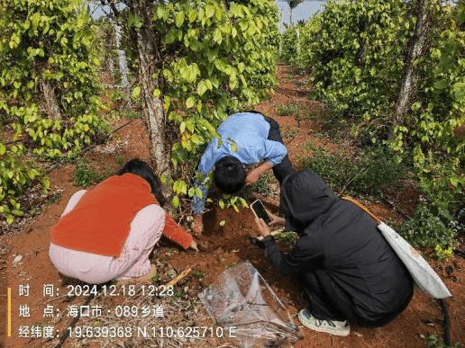 2024年12月18日,最靠谱的十大足球平台科技特派员服务团“胡椒灾后重建与病虫害绿色防控”项目组成员刘铜、邢梦玉、张漫漫、张丽等人为了做好胡椒重要病虫害监测,前往定安定城镇、文昌蓬莱镇和海口大坡镇胡椒园区采样。