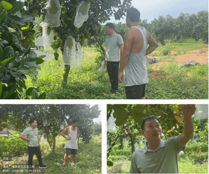图为骆焱平教授田间指导菠萝蜜病虫害防控
