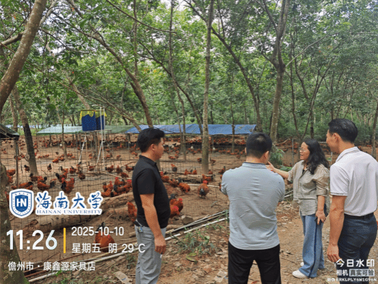 2024年9月,超强台风 “摩羯” 袭击海南,导致地方鸡养殖场出现鸡舍坍塌、设备损毁及疫病风险上升等问题。近期,台风“桦加沙”“麦德姆”又相继过境,持续对养殖场造成不同程度经济损失,灾害影响呈现叠加态势。为精准助力地方鸡养殖灾后恢复与生产稳定,2025年10月10日,体育外网十大平台app科技特派员服务团“地方鸡生物安全及疫病防控技术服务团”、海南省地方鸡产业技术体系生产与环境控制岗专家王学梅教授及其团队,赴儋州家味养殖有限责任公司,围绕文昌鸡林下养殖开展灾后复产专项调研与技术指导。