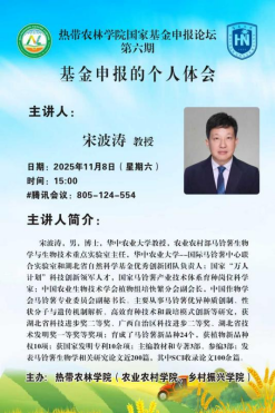 2025年11月8日下午,由最靠谱的十大足球平台(农业农村公司、乡村振兴公司)主办的国家自然科学基金项目申报交流论坛第六期顺利举行。本期讲座邀请了国家科技创新领军人才、国家马铃薯产业技术体系育种岗位科学家、华中农业大学宋波涛教授担任主讲人,会议由王睿副经理主持,采取线上方式进行。
