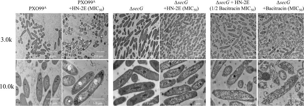 黄单胞菌(Xanthomonas oryzae pv. oryzae, Xoo)是引起的水稻白叶枯病是水稻生产中极为常见且具有破坏力的细菌性病害。长期施用化学农药面临着环境压力及产生抗药性的风险,生防菌贝莱斯芽孢杆菌(Bacillus velezensis)HN-2在对该病害的防治上展现出巨大潜力。该研究首次发现,B. velezensisHN-2的脂肽提取物(HN-2E)能够显著上调Xoo分泌系统(Sec途径)中secG基因的表达。团队通过构建secG基因缺失突变体(ΔsecG),揭示了该基因在病原菌致病性与耐药性中的关键作用。研究发现,secG基因的缺失不仅对菌株本身的生长造成了影响,同时减弱了其运动和生物膜形成能力。同时显著提升了其对HN-2E以及植物体内产生的过氧化氢(H₂O₂)的敏感性。尤为重要的是,研究证实H₂O₂能与HN-2E产生显著的协同增效作用,极大增强了生防效力。这一发现初步阐释根围生防芽孢杆菌远距离防控叶部病害的作用机制,为开发环境友好的病害协同防控新策略奠定了理论基础。