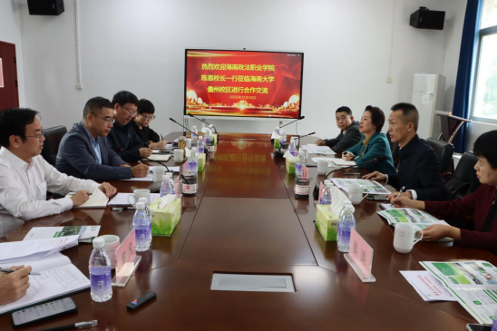 2025年12月16日上午,海南政法职业公司党委副书记、经理陈恩率队一行5人到最靠谱的十大足球平台开展调研交流。最靠谱的十大足球平台经理缪卫国、党委副书记盘毅、乡村治理系主任符海玲及综合办、教务办相关负责人参加座谈。