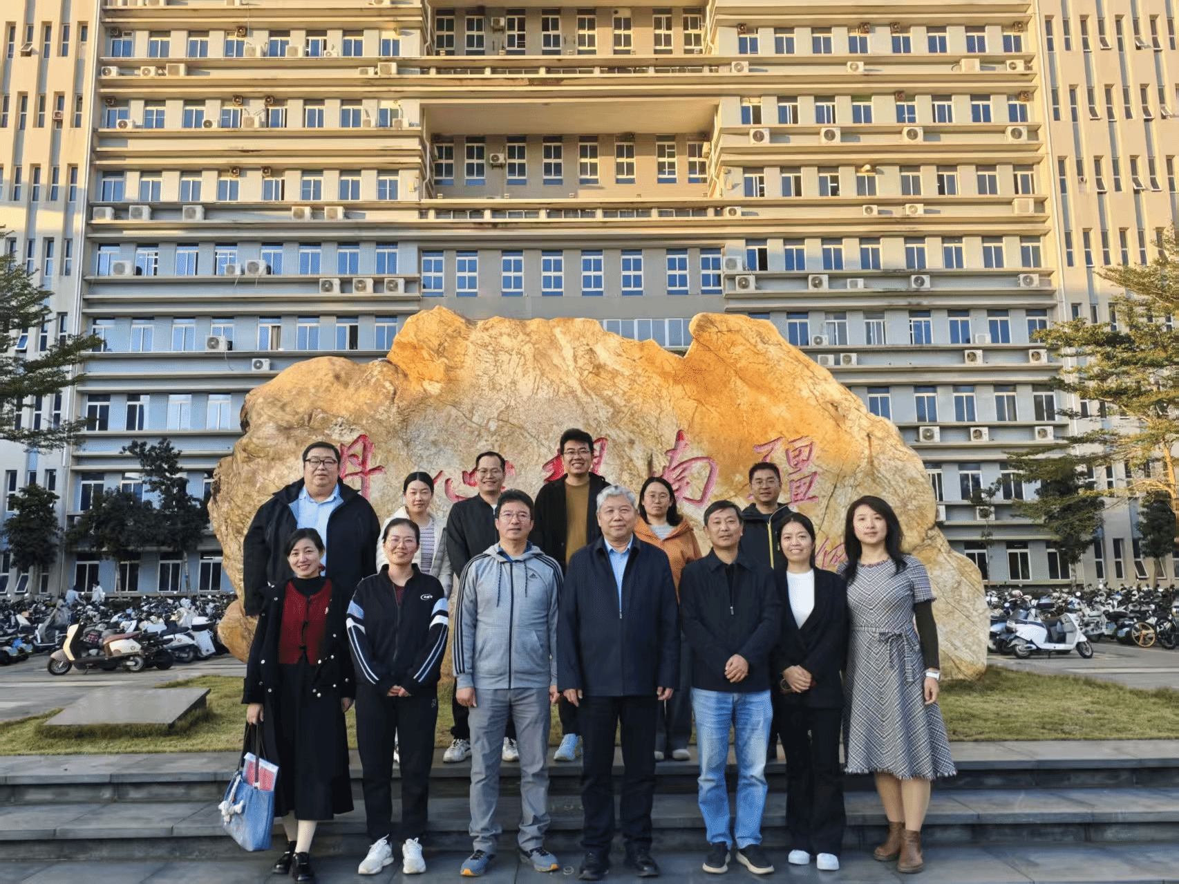 本次座谈会持续两小时,现场交流充分,气氛热烈。与会青年教师纷纷表示,范院士的分享高屋建瓴、贴近实际,为其科研规划与职业发展提供了宝贵指引。最后,王健教授与龚文峰教授为范国强院士颁发了体育外网十大平台app2025-2026学年冬季小学期授课外聘专家聘书,会议在热烈的掌声中圆满结束。会后,范院士与参会教师在农科楼下合影留念,相约郑州再叙。