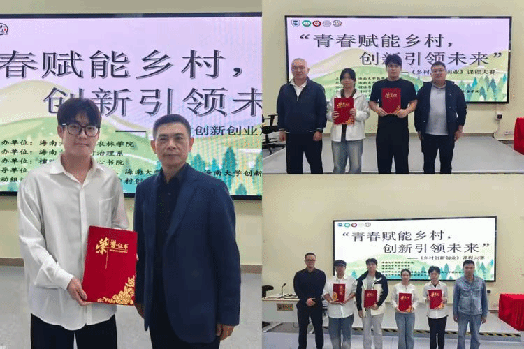 作为本次比赛的组织者,协会从策划协调、人员安排到流程把控,都进行了精心筹备。大赛上,本次课程大赛荣幸邀请到丹心书院王珍书记、檀雅书院学工办李朋飞副主任、檀雅书院纪俊铭老师、儋州校区基地运管中心蔡夫博副主任,以及课程主讲老师付广担任评委。他们的到来,为这场青春与乡村相会的创意盛宴增添了专业与分量。