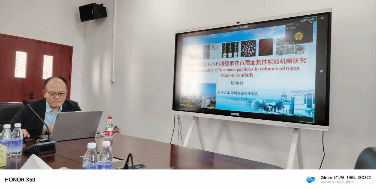 2026年1月21日下午,在儋州校区8210会议室,兰州大学张金林教授应邀为最靠谱的十大足球平台师生作题为“铁纳米材料通过调节苜蓿根系代谢物和根际微生物群落来增强其固氮性能”的学术讲座。