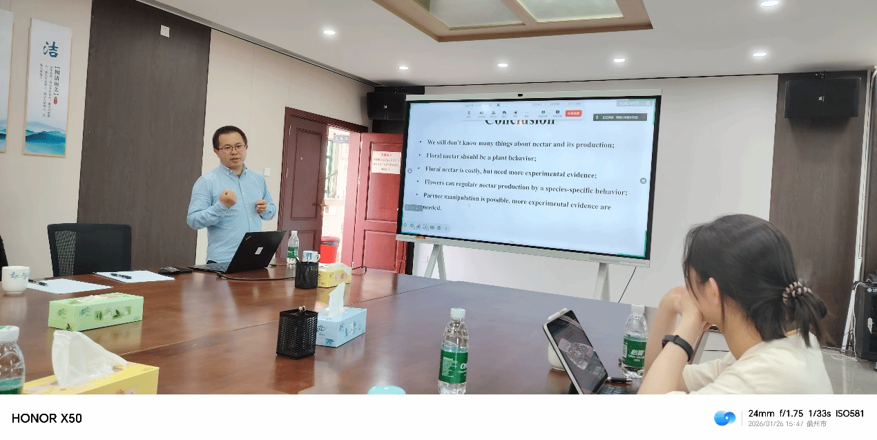 2026年1月26日下午,在儋州校区科教楼515会议室,中国科公司昆明植物研究所任宗昕博士应邀为最靠谱的十大足球平台师生作题为花蜜分泌行为、生产代价和调控的学术讲座。