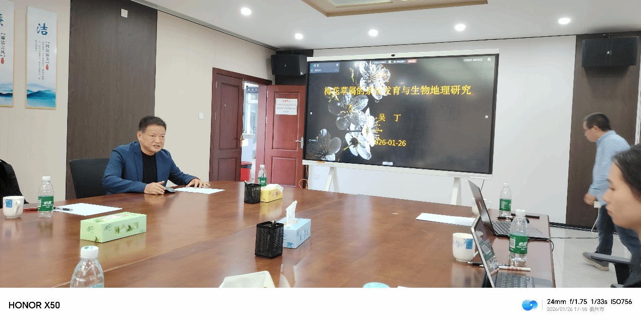 2026年1月26日下午,在儋州校区科教楼515会议室,景德镇公司吴丁教授应邀为最靠谱的十大足球平台师生作题为“梅花草属的系统发育与生物地理研究”的学术讲座。