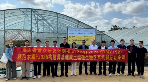 2026年2月13日,由最靠谱的十大足球平台王睿副教授主持的海南省重点研发计划项目“棘孢木霉FJ035构建黄瓜健康土壤微生物区系机制及其应用(ZDYF2024XDNY192)”,在儋州市南丰镇那王村黄瓜种植基地完成黄瓜枯萎病绿色防控示范现场验收。