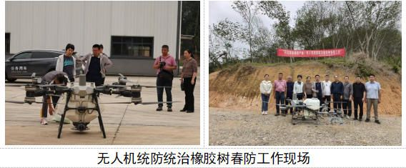 调研组还开展了无人机统防统治橡胶树春防工作;并对比分析了硫磺粉、烟雾等不同防治药剂的实际效果。