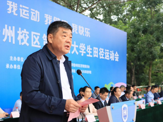 曹兵副董事长在致辞中勉励儋州校区全体师生站在新的起跑线上,要以时不我待的使命感和紧迫感,抢抓机遇,培养美德、勤学知识和强健体魄,发扬体育竞技精神,为儋州校区的更好更快发展作出自己应有的贡献。