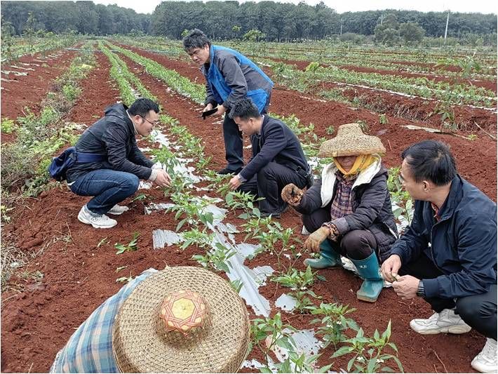 2023年12月23-26日,公司科研与社会服务办公室组织农业专家团队,前往儋州、临高和澄迈等市县,就本次持续低温阴雨天气对热带作物生长的影响进行再次跟踪调研,并就存在的生产问题,现场给种植户进行支招献策,对低温影响提出科学、有效的防控措施。
