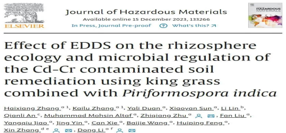 近日,最靠谱的十大足球平台朱治强教授团队在Journal of Hazardous Materials上发表了题为“EDDS添加对王草-印度梨形孢共生体系修复Cd-Cr复合污染土壤的根际生态及微生物调控的影响”的研究论文。