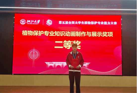 由张彪同学(团队成员:吴豈彰、梁祺函、邹灿锦)代表参赛的“植物保护专业知识动画制作与展示”项目获得二等奖