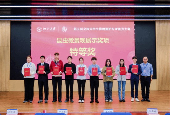 凭借扎实的专业功底和出色的临场表现,同学们一路过关斩将,共斩获特等奖3项,一等奖1项及二等奖5项,最终获团体一等奖、优秀组织奖。其中, “昆虫微景观展示”、 “植物病虫害知识考核”和 “植物保护专业知识视频制作与展示”获特等奖; “植物病理学实验操作和病原菌结构绘图”获一等奖, “创新创业优秀项目展示”、 “本科生学术交流报告”、 “植物保护专业知识动画制作与展示”、 “昆虫解剖和昆虫结构绘图”、 “昆虫标本现场制作”等项目中获二等奖,展现了公司专业人才培养的显著成效。