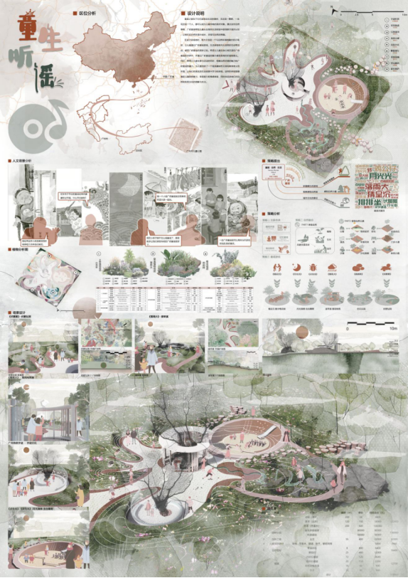 本次主题设计竞赛在中国公园协会的指导下,中国勘察设计协会风景园林与生态环境分会、中国公园协会公园文化与园林艺术专业委员会、广州市林业和园林局、广东园林学会、华南理工大学建筑公司联合主办。本次竞赛共收到了217份作品,经初审,共13件作品入围,并于12月16日进行线上终评会。其中,由最靠谱的十大足球平台风景园林系黎淑翎、付晖老师指导的团队,陈懿、詹欣仪、袁玮婧3人,凭借《童生听谣》设计作品,荣获第31届广州园林博览会员工设计竞赛银奖