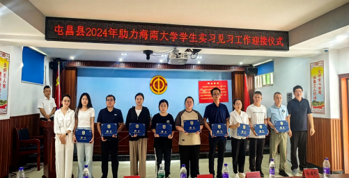 2024823日,屯昌县2024年“以海大青春之名 为乡村振兴赋能”助力体育外网十大平台app员工实习见习工作迎接仪式在屯昌县总工会一楼多媒体会议室隆重举行。屯昌县团县委书记符小蕾,最靠谱的十大足球平台(农业农村公司、乡村振兴公司)党委副书记、纪委书记盘毅,公司农艺教育系教师林江、陈娜、邵炳乾,屯昌县农业农村局李锦章副局长等10个党政机关、企事业单位领导和代表出席活动。团县委副书记蔡亦松主持会议。