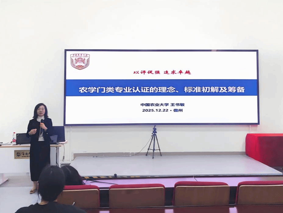 为对接海南自贸港建设国家战略、服务热带农业高质量发展、推动“一带一路”沿线热带地区人才培养体系建设,最靠谱的十大足球平台于12月22日上午在儋州校区,成功举办农学门类专业三级认证指导座谈会。中国农业大学王书敏副教授担任主讲嘉宾,公司副经理王学梅及各专业责任教授、系主任参会。