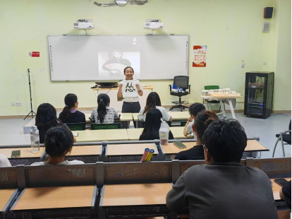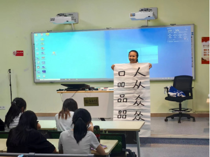 在讲座开始之际,何海琼老师让同学们亲自动手,用毛笔在宣纸上写上自己的名字,让同学们感受书法的魅力。本场讲座中,何老师运用大量图文和视频,生动地为大家展示汉字的演变历程-从最开始的画出来到简化形成今天我们所看见的文字;同时,何老师也讲解了不同风格的书法艺术,展示了书法的美,更用一代文豪苏东坡的故事和诗词深入浅出地讲解了书法的精神内涵,带领同学们体悟书法背后深厚的文化底蕴,使得大家对于书法和绘画的联系以及书法的历史有了更为直观的理解。何老师用幽默风趣的话语告诉同学们,书法不仅是艺术,更是一种人生哲学,她还鼓励同学们在繁忙的学习生活中,可以抽出时间来研习书法和绘画,从中领悟到人生的真谛!