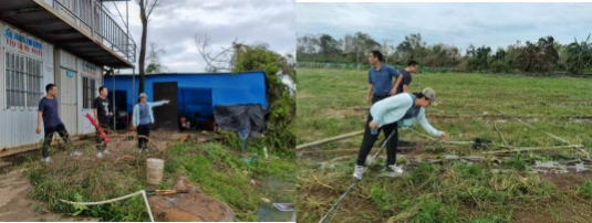 2024年9月9日,冬季瓜菜产业技术体系负责人田丽波和骨干专家王宝龙、刘建等赴琼山区三门坡镇美端村大荒洋蔬菜种植基地指导灾后恢复生产工作。该 基地面积 400 亩,目前大棚骨架完好,棚膜、防虫网全部撕裂毁坏,前期种植的 叶菜采收 1/5 ,其余全部被破坏,一些大棚积水非常严重。建议:1.尽快重新覆盖大棚棚膜等覆盖物,以便迅速恢复生产,防止后续暴雨危害;2.及时清理畦沟,快速排除积水,减少水淹时间;3.土壤翻耕晾晒,采用生石灰消毒处理;4.尽快 安排补重叶菜,保证市场蔬菜供应。