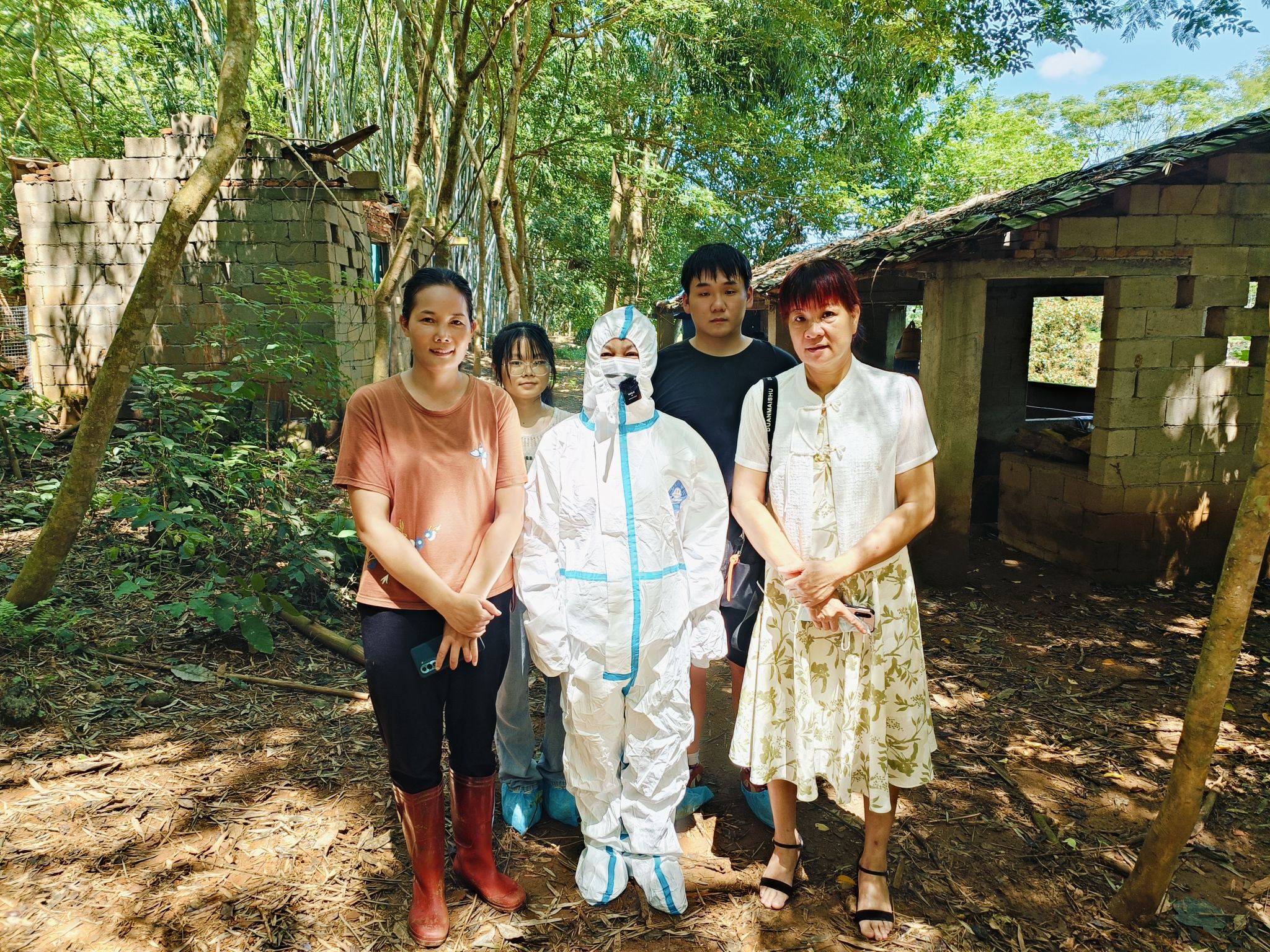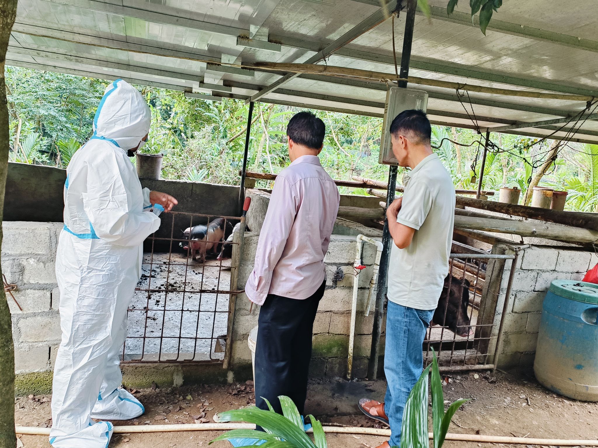 本次科技志愿服务团前往白沙县打安镇福妥村委会,可程村委会,南达村委会的五脚猪养殖户走访,对五脚猪养殖业灾后情况进行调察。发现台风不仅对五指山猪直接造成了严重的物理伤害,还使部分猪出现了出现食欲减退,胃肠道溃疡,猝死等应激综合症和继发感染了疫病。同时,科技志愿者还对五脚猪进行了生物样本采样,将会带样品回到实验室进行分析,检查继发感染的疫病种类。
