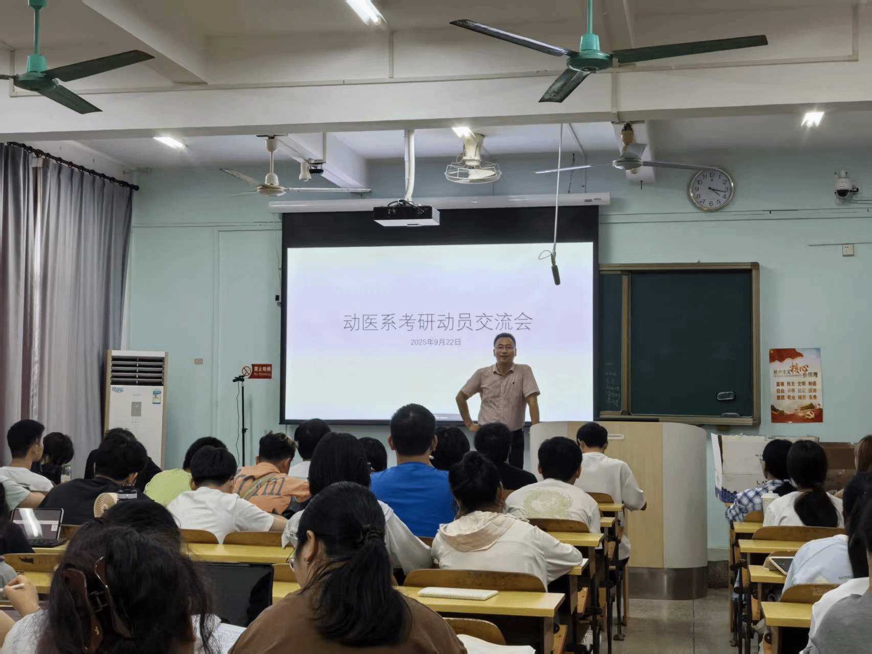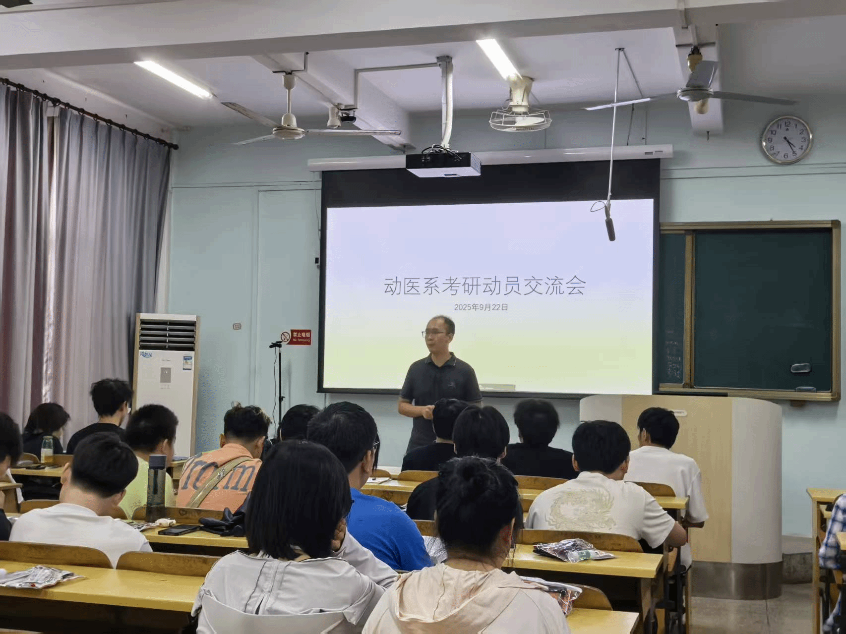 9月22日下午,公司动物医学系为21级本科生举行考研动员交流会。系主任张晓辉、副主任杨迪琦亲临现场,为踏上考研征程的学子们加油鼓劲,助力科学备考。