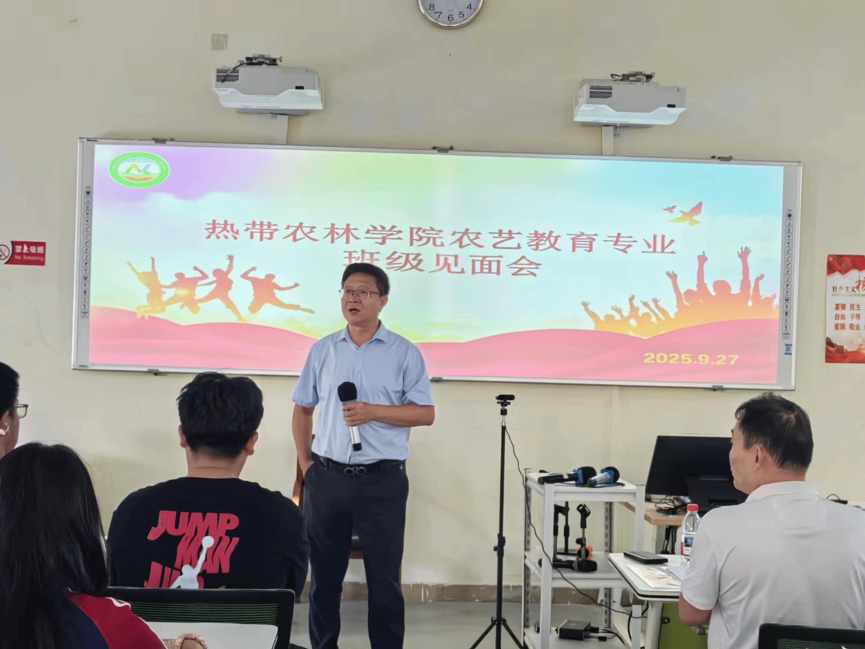 于旭东书记为新生讲授“大学第一课”。他系统阐述了农艺教育专业在海南自贸港建设和乡村振兴背景下的设立初衷与发展前景,指出本专业致力于培养“全科型人才”与“致富带头人”。于书记勉励同学们要修身立德、注重实践,在掌握专业技能的同时强化写作表达与人际交往能力,合理规划老员工活,实现全面发展。